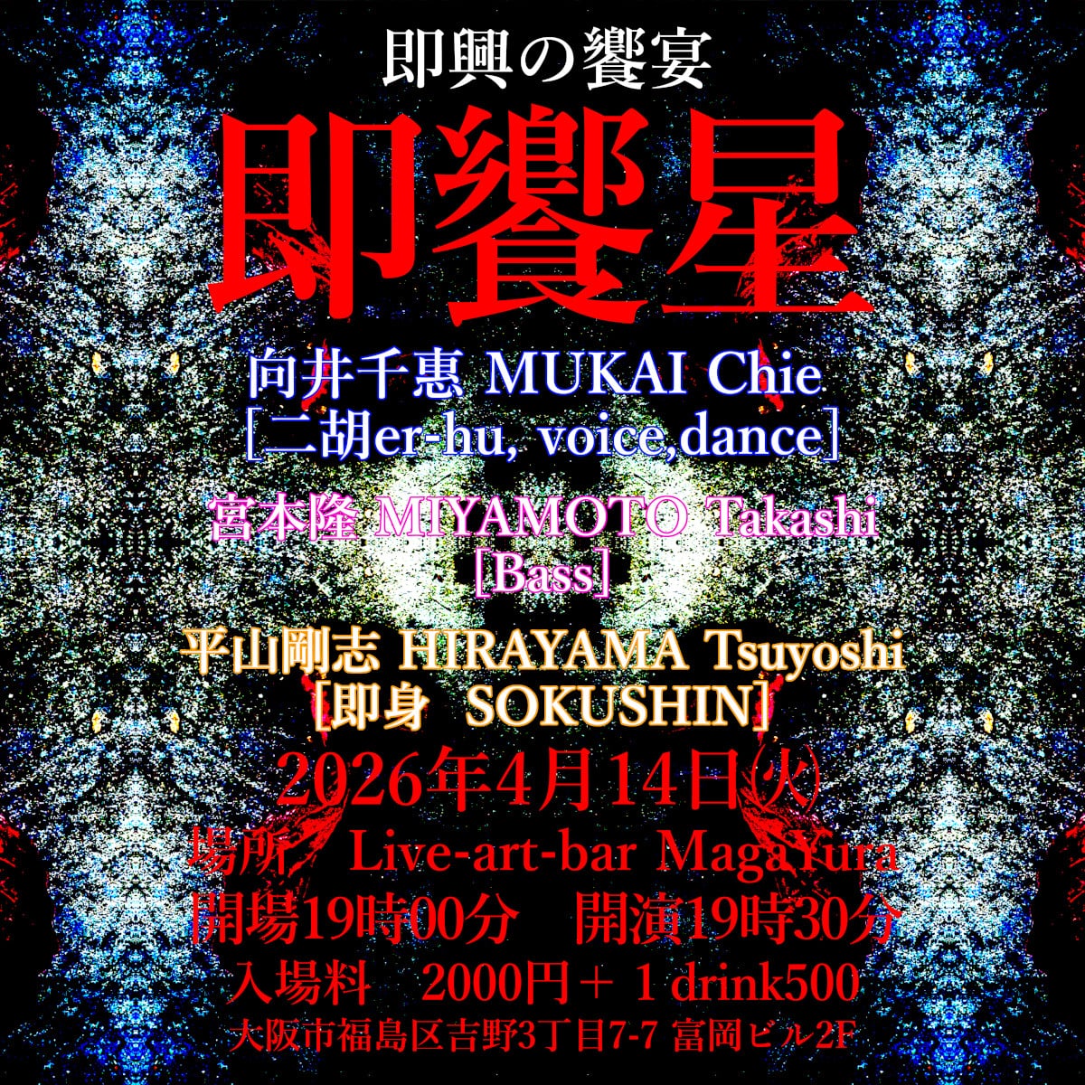 オープン 18:30 開始時間 19:30 前売り ¥2,300 当日 ¥2,500