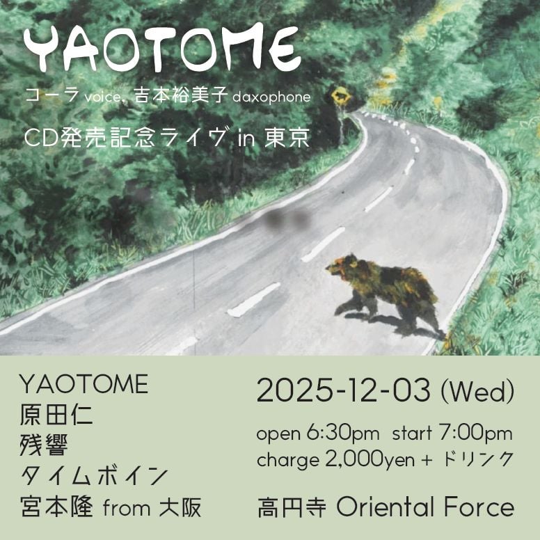 12月3日(水)「YAOTOME CD発売記念ライヴ in 東京」